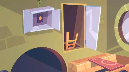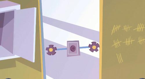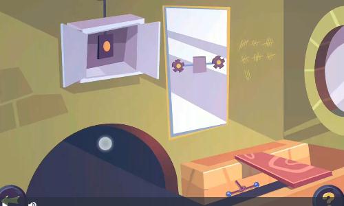 轉(zhuǎn)動(dòng)插梢,鏡子下降,露出扶梯,此關(guān)通過(guò)。