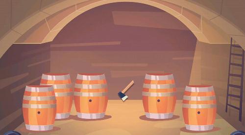 沿著梯子下去,把桶子搬開(kāi),獲得斧頭一把。